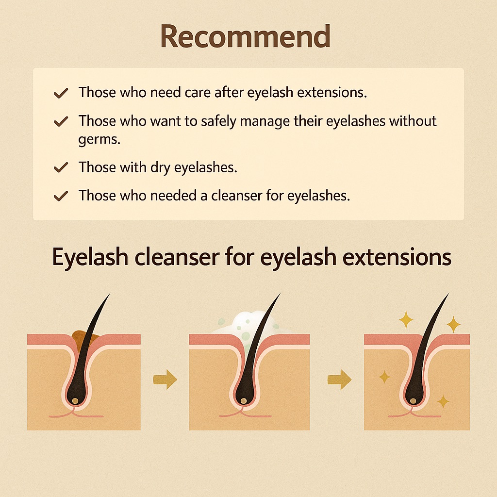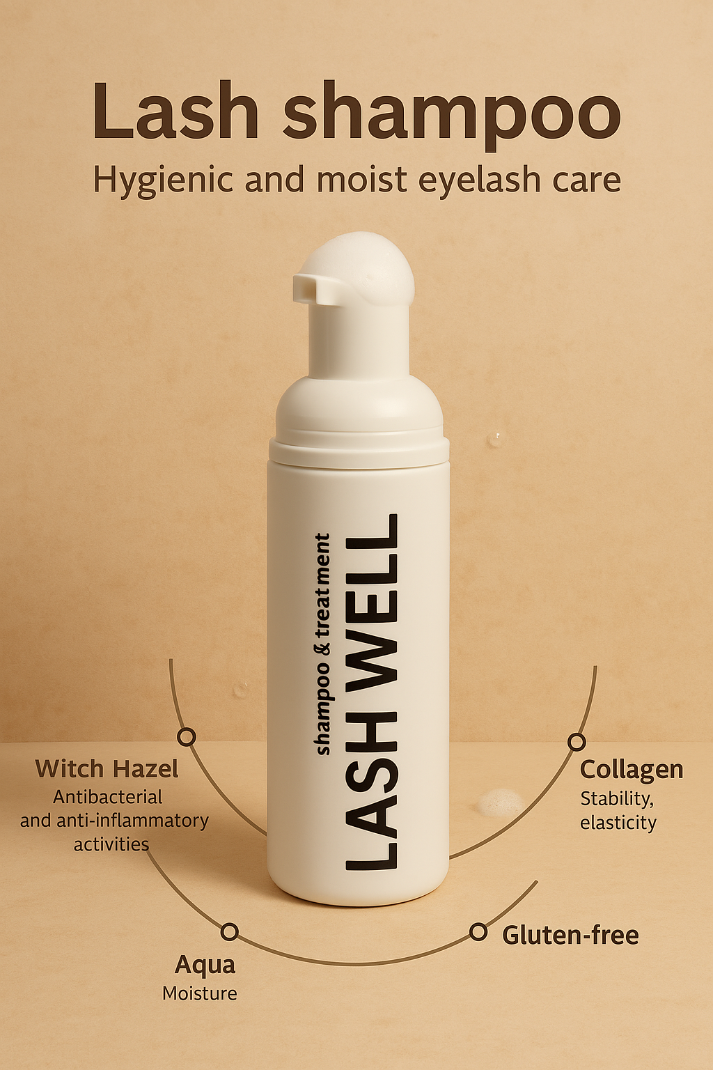 Gentle foaming cleanser designed for lash extensions and natural lashes. Infused with Witch Hazel, Collagen, and hydrating Aqua to remove buildup, reduce irritation, and support lash health.